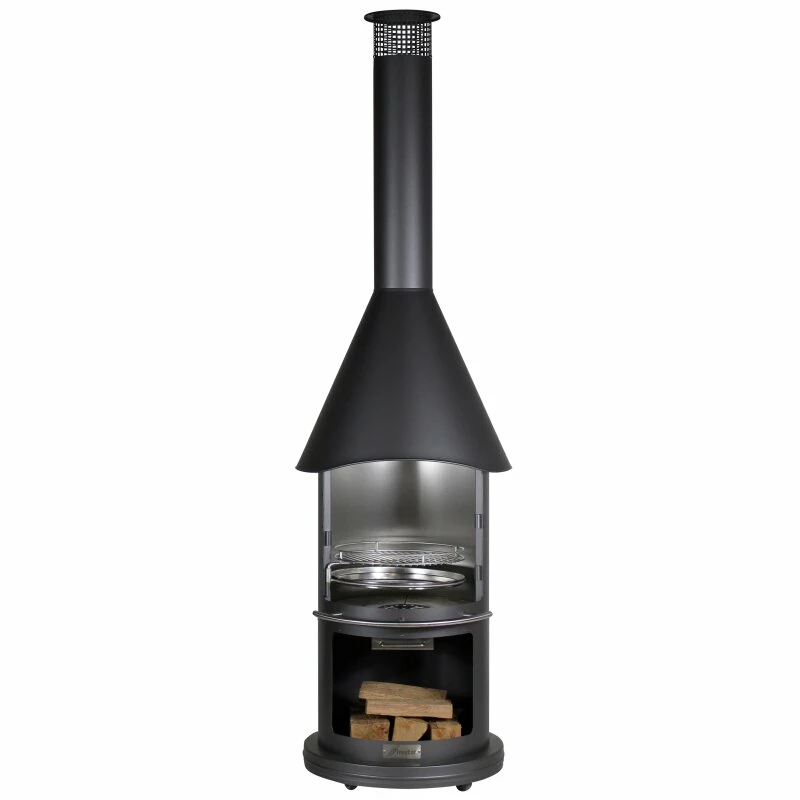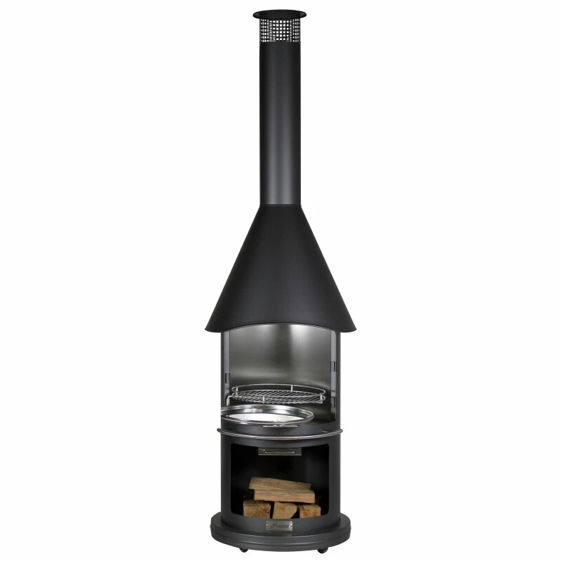 Dank der Vielzahl an tollem Zubehör können Sie Ihren Gartenkamin individuell erweitern. Im Lieferumfang ist bereits das schwenkbare Grillrost und die Fettschutzpfanne für Sie enthalten. Aufgrund des einzigartig ausgestatteten Brennraum mit feuerfestem und witterungsbeständigem Beton können hervorragende Brenneigenschaften und eine lange Lebensdauer erreicht werden. Der Brennraumboden wurde mit einem speziellen Beton ausgestattet, der absolut witterungsbeständig und bruchfest ist.
