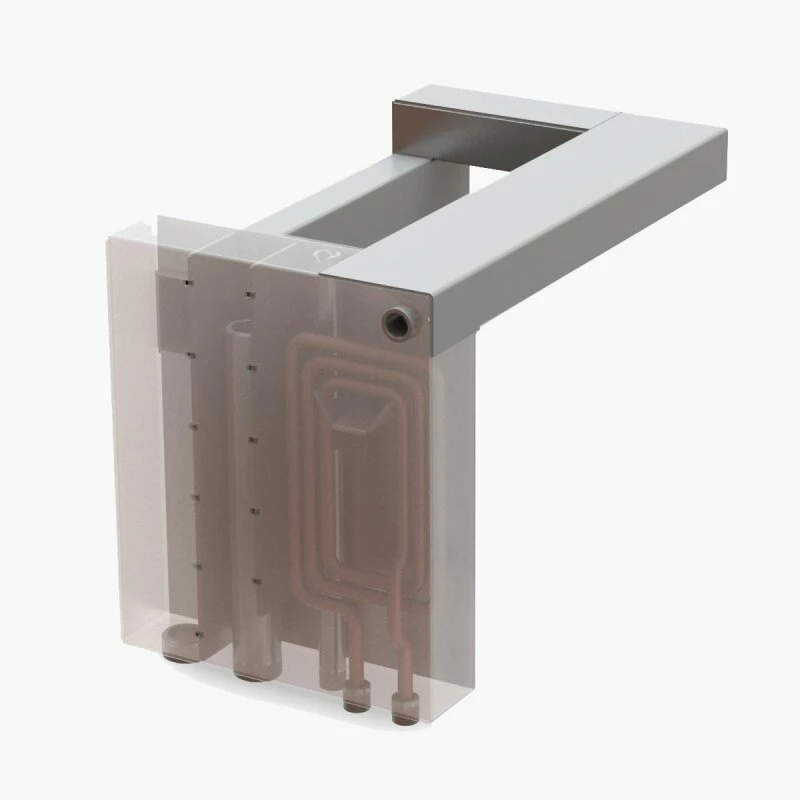 Mittels der vorhandenen Heiztasche wird der größte Teil der Wärme zur Erzeugung von Warmwasser verwendet und in den Wasserkreislauf eingespeist.