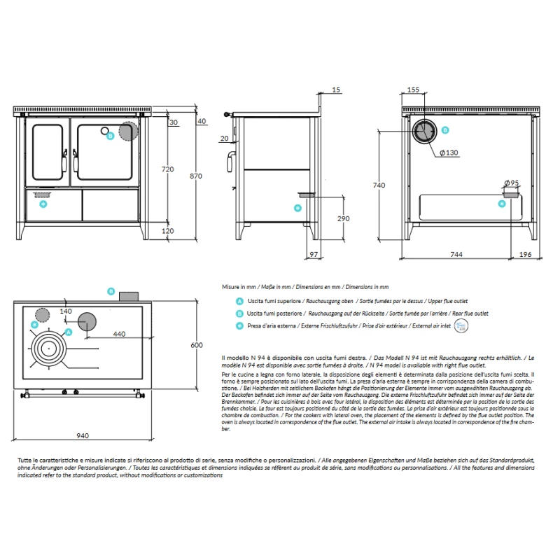 Holzherd Rizzoli N94 Stone – 8,0 kW