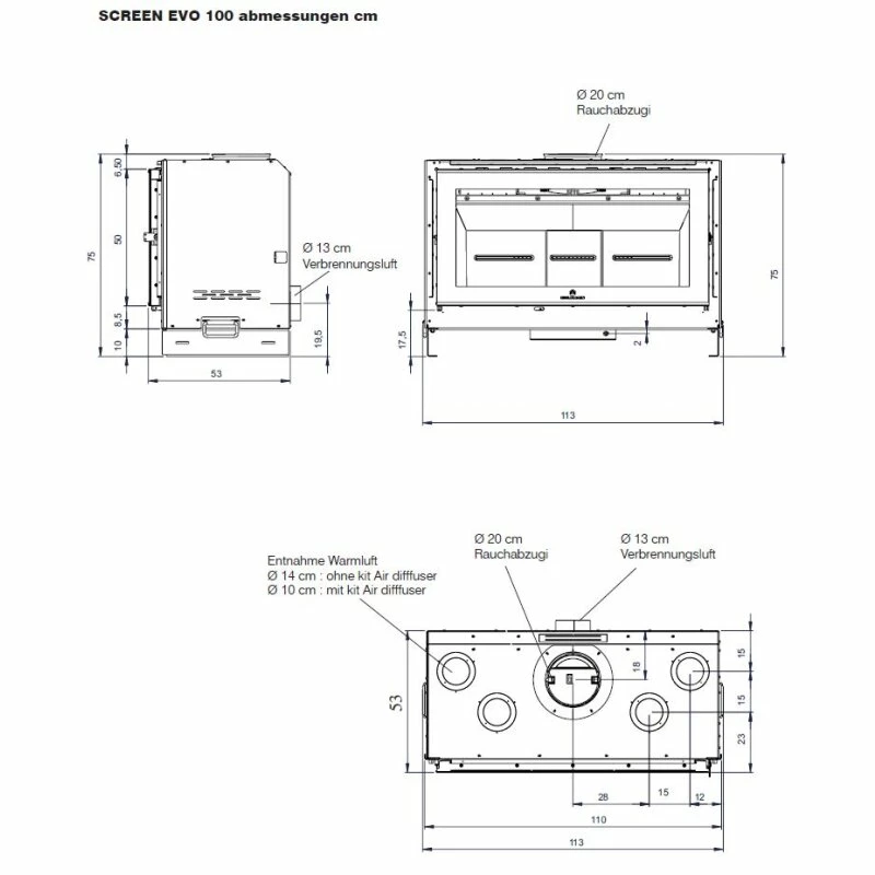Kamineinsatz Edilkamin SCREEN EVO 100 – 14,6 kW