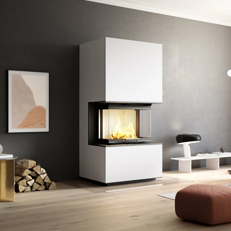 Der Scan 5004 S beeindruckt mit einem tollen drei-Seiten-Blick auf das Feuer und einer selbstschließenden Schiebetür. Zudem ist der Komplettkamin für die externe Verbrennungsluft vorbereitet.