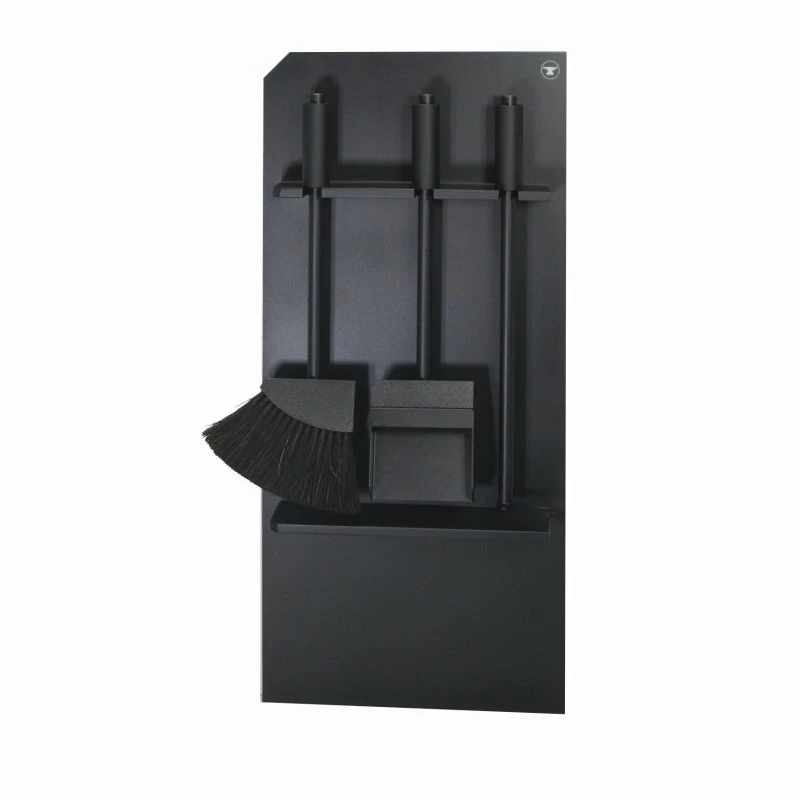 Das 3-teilige Kaminbesteck ist zur Abdeckung der Reinigungsluke bzw. Reinigungstür des Kamins gedacht. Es sind vier selbstklebende Magnete für die Montage inklusive. Der Schürhaken, Besen und die Schaufel finden auf dem praktischen Gestell aus Stahl Platz.