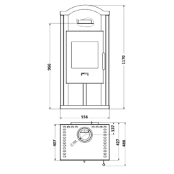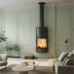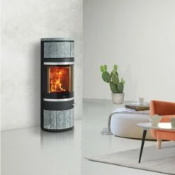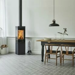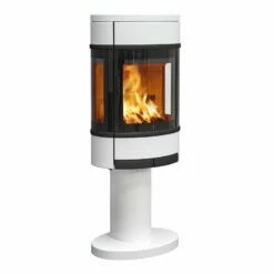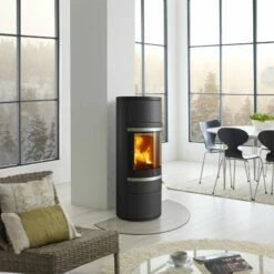 Kaminofen SCAN 68-9 Auf Säule Mit Seitenfenstern – Pedestal, Griffe Und Leisten Schwarz – 5,5 KW