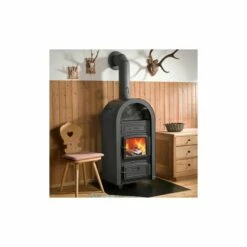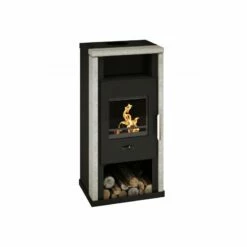 Kaminofen SCAN 85-1 Mit Niedrigem Sockel Und Niedrigen Top, Griffe Und Leisten Schwarz – 8 KW