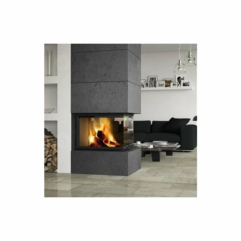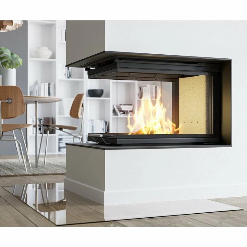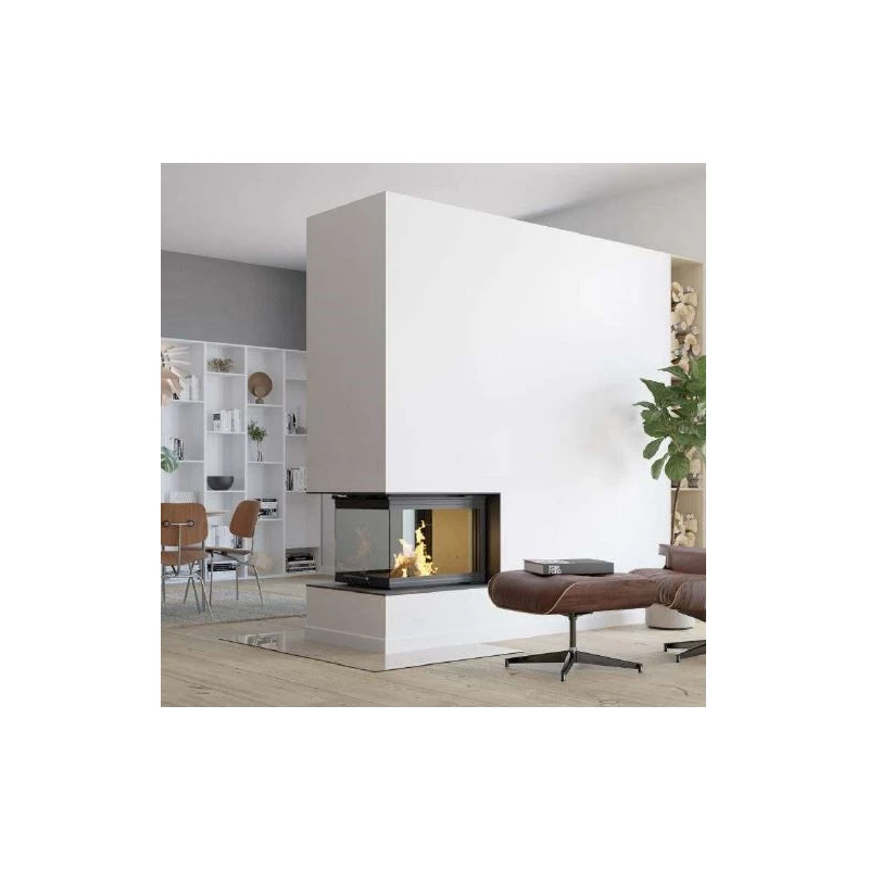 Der Scan 5005 FRL besitzt drei schöne große Glasscheiben, wodurch man die Flammen im ganzen Wohnzimmer genießen kann. Die Hebetür macht das Öffnen der Tür leicht. Zudem kann der Kamineinsatz auch als Raumteiler montiert werden. Dadurch steht er dann im Mittelpunkt des Wohnzimmers.