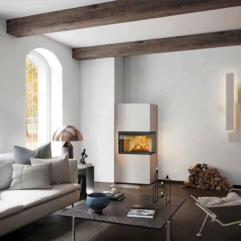 Mit seiner gestreckten Glasfront bietet der Scan 5007 einen unglaublichen Blick auf das lodernde Feuer. Wählen Sie selbst, ob Sie den Türanschlag rechts oder links wünschen (FR oder FL).