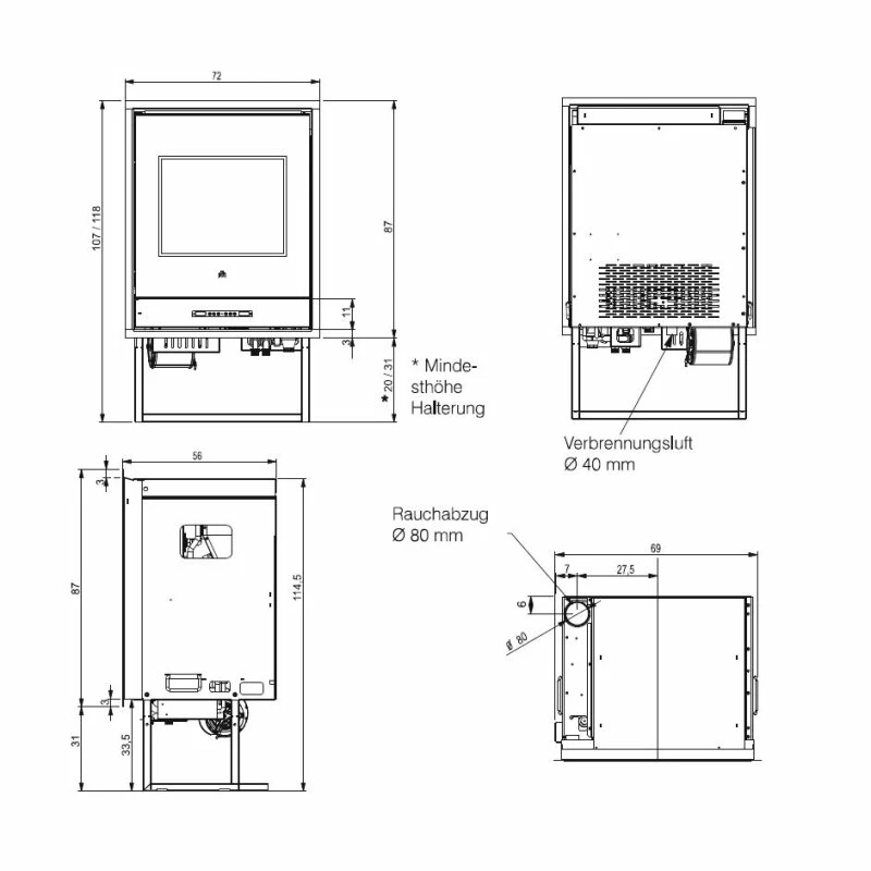 Der Feuerraum ist aus hochwertigen Stahl gefertigt. Der Rauchabzug befindet sich an der Oberseite.