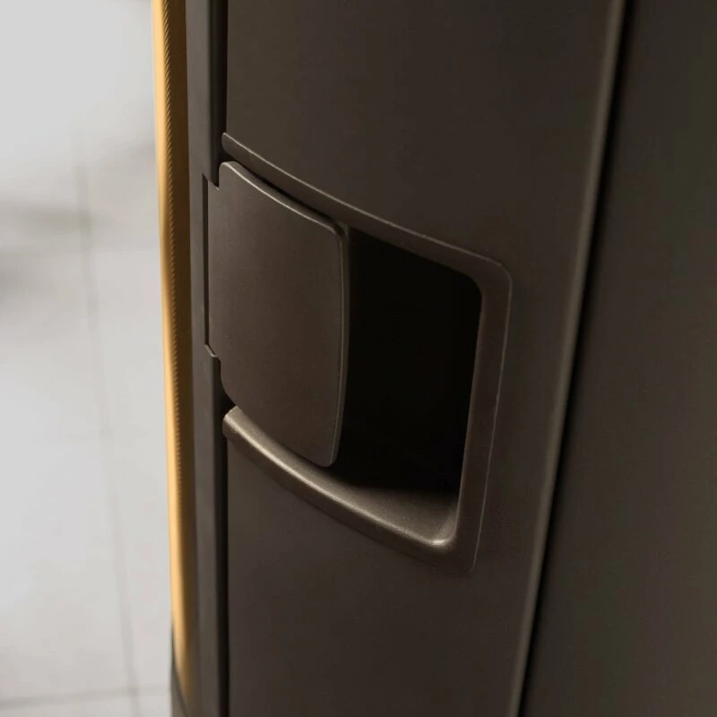 Der Stila lässt einfach jeden staunen mit seiner imposanten Höhe von 170 cm. Dennoch ist er mit seinen gerade mal 44cm Durchmesser äußerst schlank und elegant, nimmt somit nicht viel Platz im Raum ein, zeigt dabei durch das unendlich weit gekrümmte Türglas auch noch sehr viel Feuer. Besonders auffallend ist der in die Verkleidung integrierte Griff der für eine saubere Linienführung sorgt.