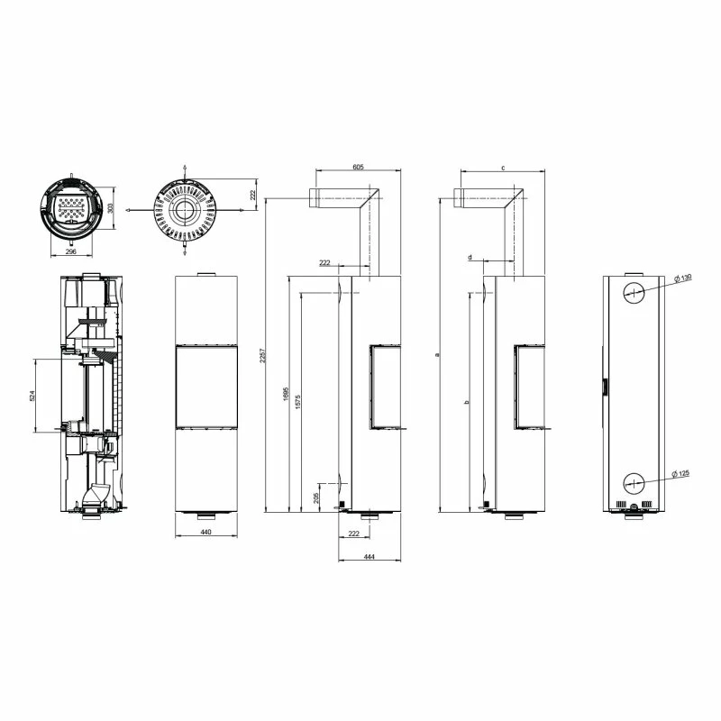 - Rauchrohranschluss mittig 1575 mm
