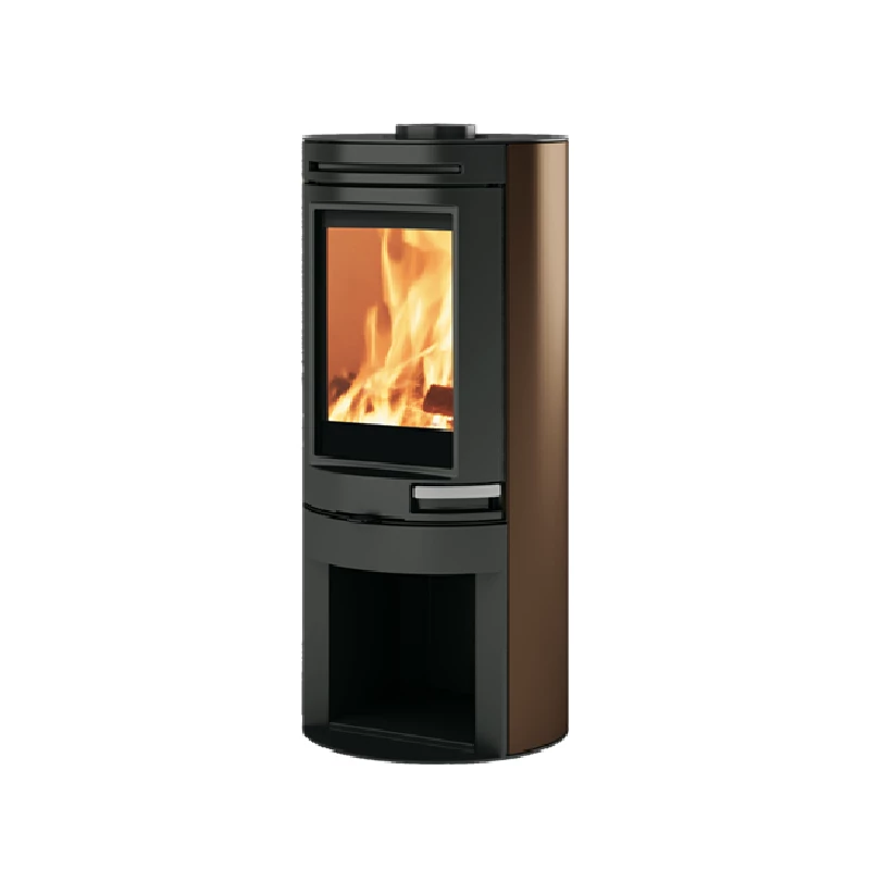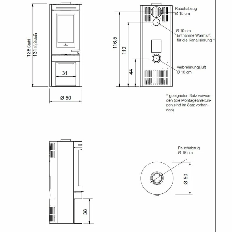 Im unteren Bereich ist ein Fach zum Aufbewahren von Brennholz verbaut. Ebenso ist es möglich das Gerät auch mit gußeisernem Feuerraum zu bestellen.