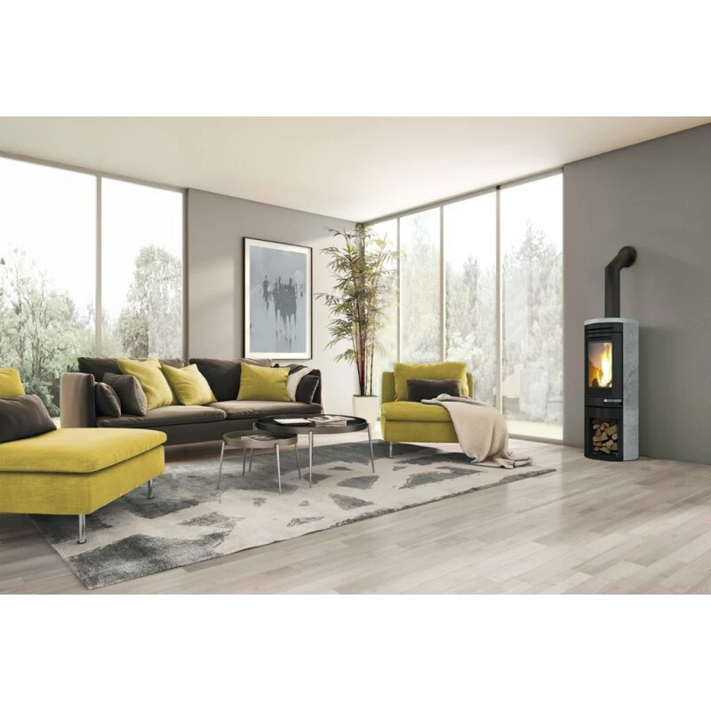 Dieser Holzofen im edlen Design begeistert durch seine moderne Technik. Der Ofen ist mit einer hochwertigen Verkleidung aus Stahl oder wahlweise Naturstein ausgestattet und bietet mit seinem großen Fenstereine ideale Sicht auf die Flammen.
