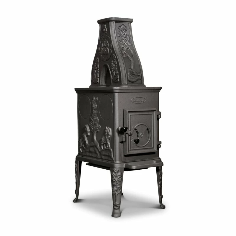 Der 100CBS ist ein traditioneller Kaminofen, der seine eigene Geschichte erzählt. Der Gussofen ist mit wunderschönen Figuren der „norwegischen Saga“ versehen und wird auch Ihren Wohnraum in seinen Bann ziehen.