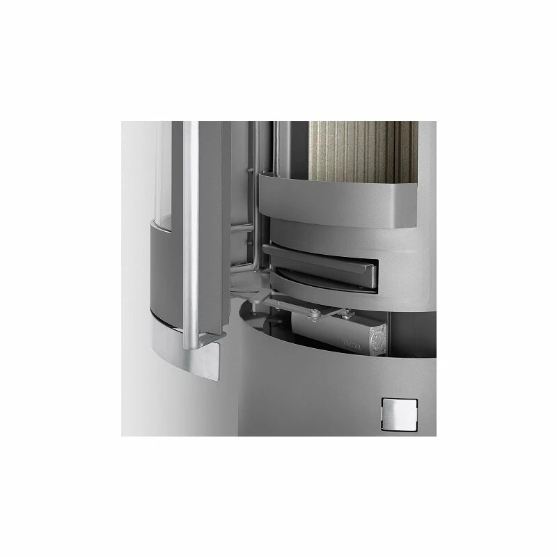 Selbstverriegelnde Verschlussmechanik. Beim Schließen der Tür schnappt ein Verschlussriegel durch Federkraft zu und hält die Tür sicher verschlossen. Zum Öffnen wird die Tür einfach am XXL-Griff aufgezogen.