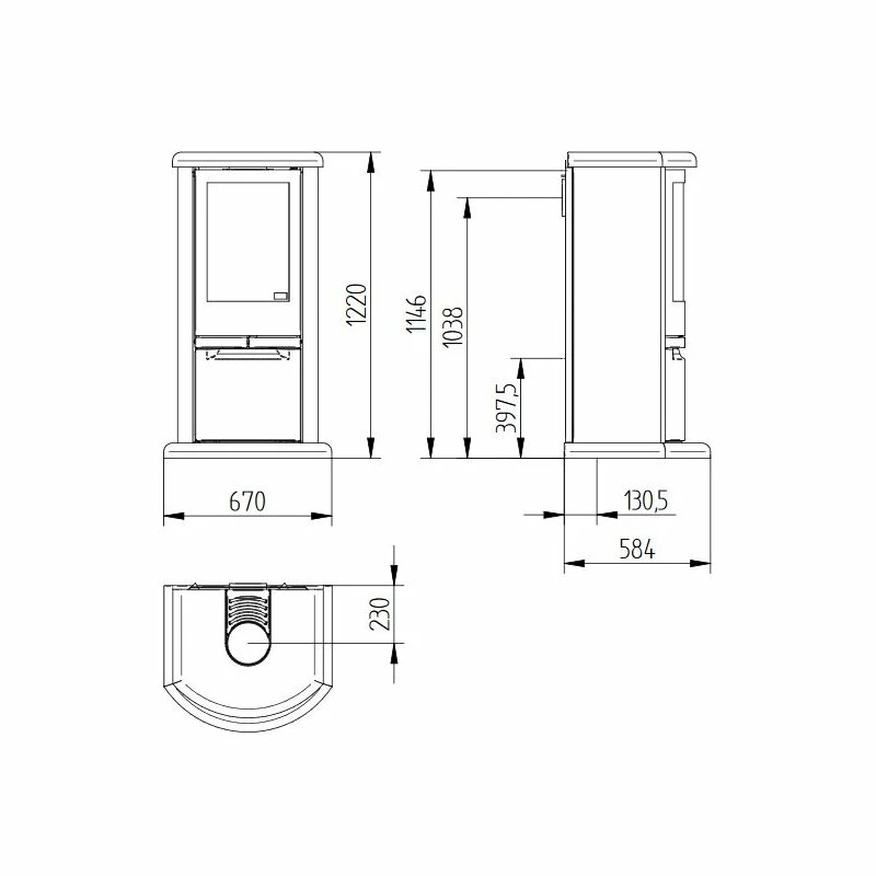 - Hier: Cosmo classic, die klassische Variante mit Specksteinverkleidung 122 x 67 x 58,4 cm
