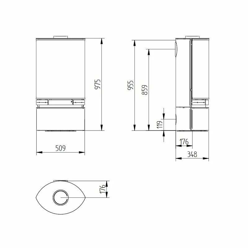 - Maße Brennkammer HxBxT 416 x 381 x 221 mm