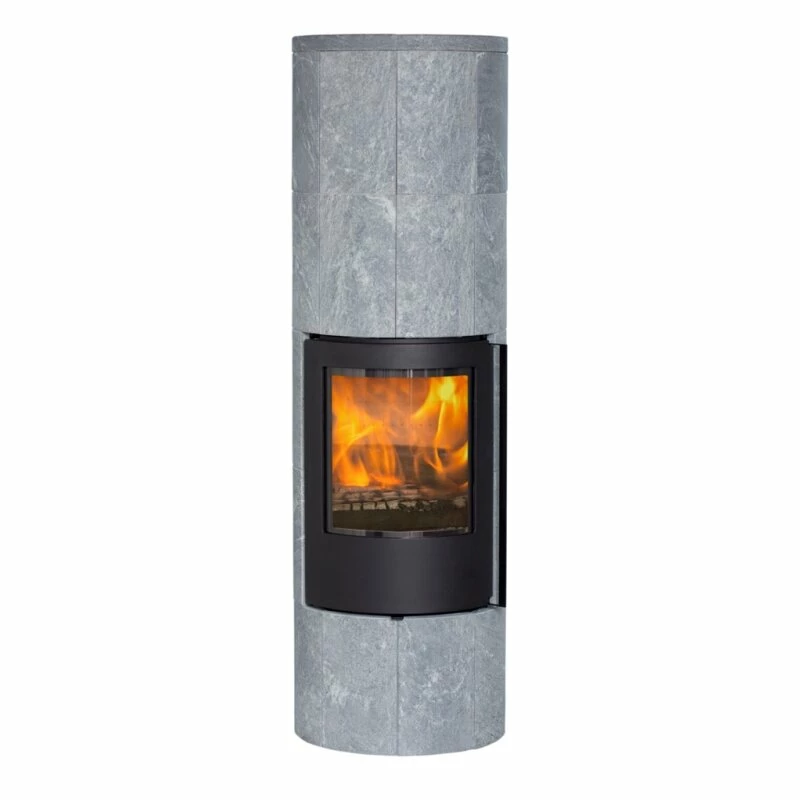 Der massive Seifensteinofen Troja 45 ist in vielerlei Hinsicht einmalig. Dieser Ofen ist nicht zuletzt der Inbegriff von Naturkunst. Das natureigene Design wird jeden einzelnen Ofen schmücken und verzieren, und jedes Mal in einzigartiger Struktur. Der Einsatz hat eine geräumige Brennkammer, ein großes gewölbtes Glasfenster, sowie das Luftsystem DuplicAir®. Die Seifensteinbekleidung wurde genau dem Einsatz angepasst, und vollendet dementsprechend das stillvolle Äußere des Ofens. Der massive finnische Seifenstein ermöglicht eine extrem effektive Wärmeabgabe, und somit eignet sich der Ofen perfekt für große Wohnungen. Die Troja 4 Serie hat oben ein Konvektionsgitter, das Einstellung der Wärmeabgabe durch den Konvektionskanal ermöglicht. Troja 45 wird außerdem mit eleganter, kindersicherer Verriegelung geliefert.