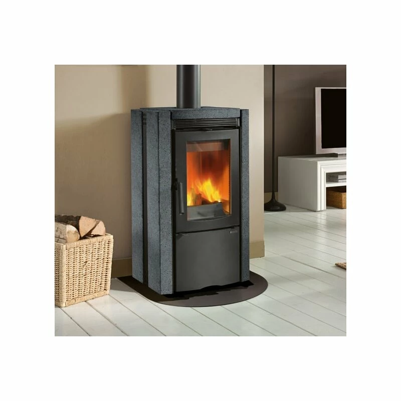 Durch seine dicke Specksteinverkleidung speichert dieses Modell optimal die Wärme.