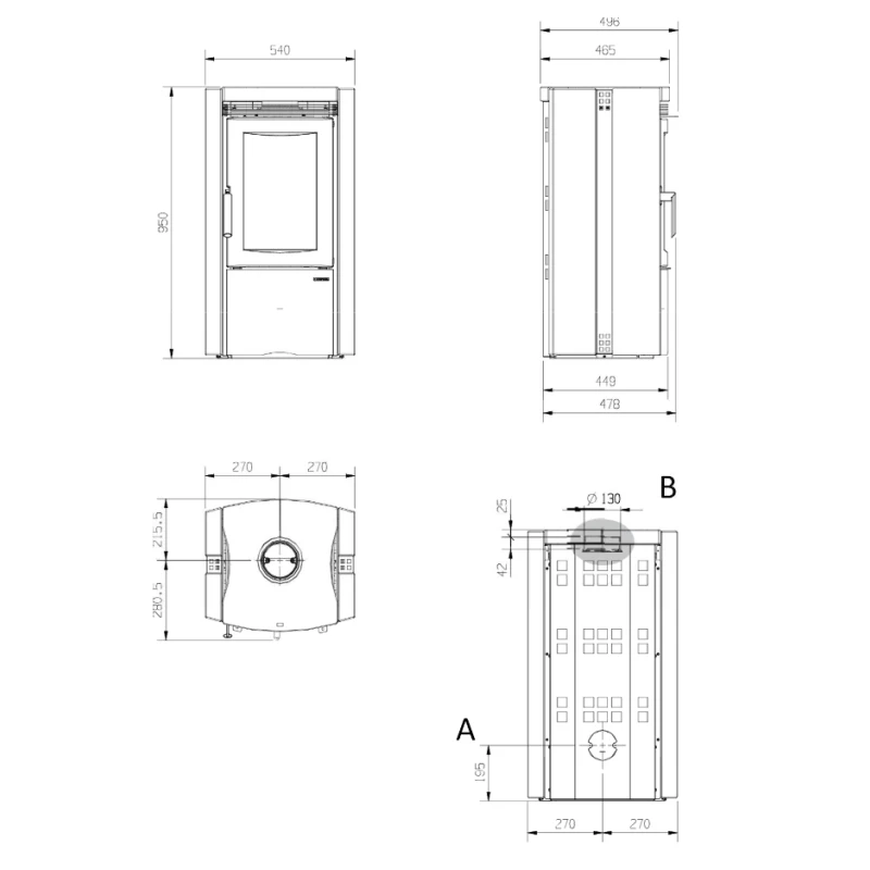 Nachstehend erhalten Sie eine Übersicht der Eigenschaften des Ofens: