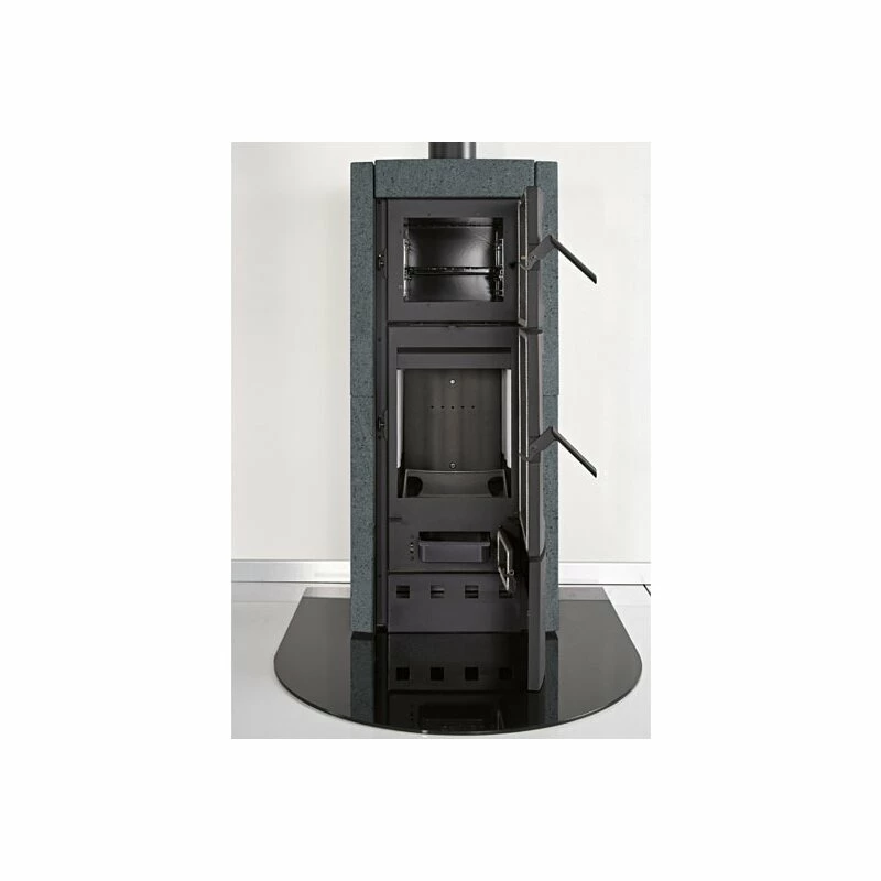 Der Kaminofen Ester Forno mit Backfach besticht durch seine klaren Linien und der massiven Vulcansteinverkleidung. In dem Backfach lassen sich hervorragend Brote und andere Köstlichkeiten mit Feueraroma zubereiten. Das Backfach hat zudem eine Temperaturanzeigen, sodass Sie die optimale Backtemperatur ablesen können.