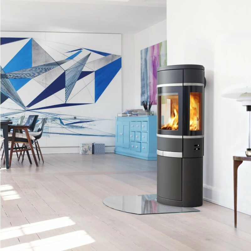 Das ikonische Design, die klaren Linien und die Ellipsen- Form zeichnen die Scan 68- Serie aus. Die Kombination aus Glas, schwarzen Metall – bei Auswahl zusätzlich mit Aluminium- schaffen ein Gesamtbild, das sich zeitlos und überzeugend auch in Wohnambiente einfügt. Der Scan 68-12 hat Griffe und Dekorleisten in Aluminium und wird einschließlich des geschlossenem Sockel Portal geliefert. Zudem verfügt das Modell über Seitenfenster, sodass Sie noch mehr Möglichkeiten haben, das Flammenspiel aus verschiedenen Blickwinkeln zu genießen.