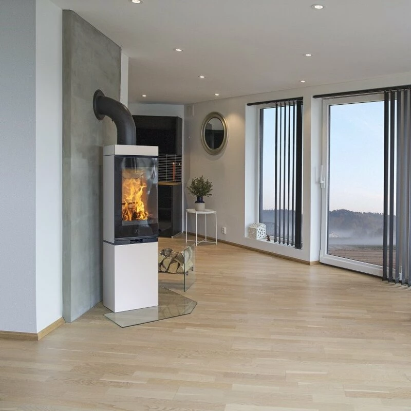 Eleganz in reduzierter Form. Wie eine Basaltsäule mit glühender Lava bietet der Scan 80 durch die Prismascheibe einen wunderschönen 180 Grad Blick auf die Flammen. Der Kaminofen eignet sich perfekt für eine Installation in der Ecke aber auch in jedem anderen Bereich des Wohnraums ist er ein wahrer Blickfang. Im besten dänischen Design ist der Griff im Ofen integriert, sodass der Kaminofen durch seine klare und schlanke Linienführung besticht. Der Scan 80-1 hat einen geschlossenen Sockel, während Scan 80-2 mit einer Tür versehen ist, damit man Holz im unteren Fach aufbewahren kann. Das Modell Scan 80-2 ist ebenfalls in unserem Shop erhältlich.