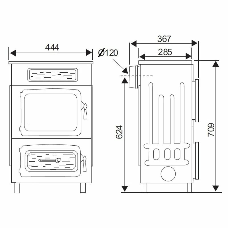 - Abgasanschluss hinten: Ø 120 mm