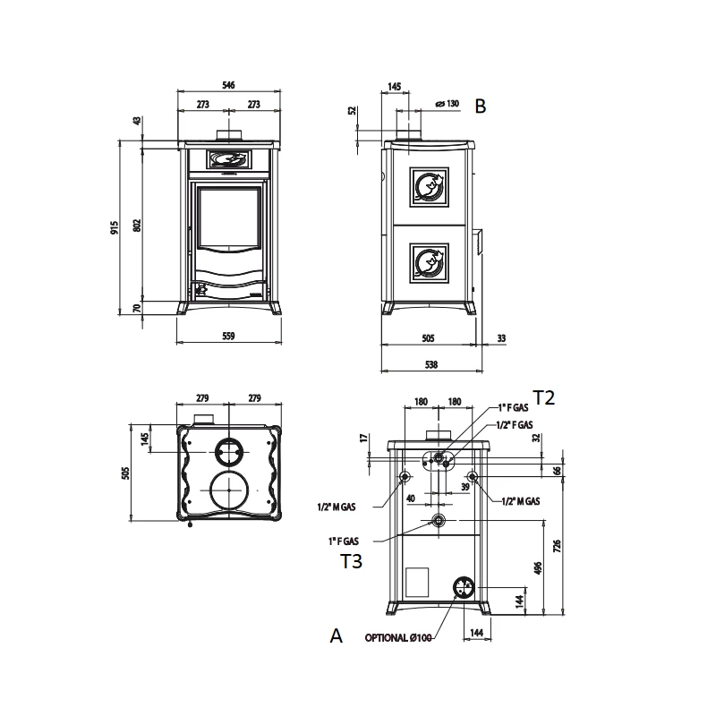– Innenbekleidung des Feuerraums aus Gusseisen und Stahl