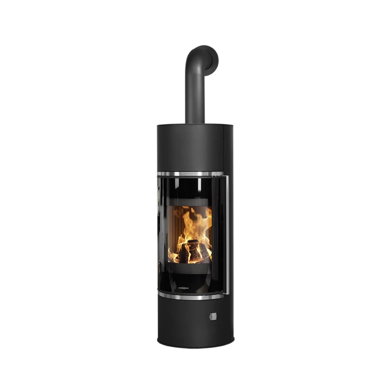 Durch die gewölbte Scheibe ermöglicht Arena Aqua 2.0 einen Blick auf das Flammenspiel aus den verschiedensten Perspektiven. Unverkennbar spiegelt sich die Designlinie von Oranier in diesem Kaminofen wider.