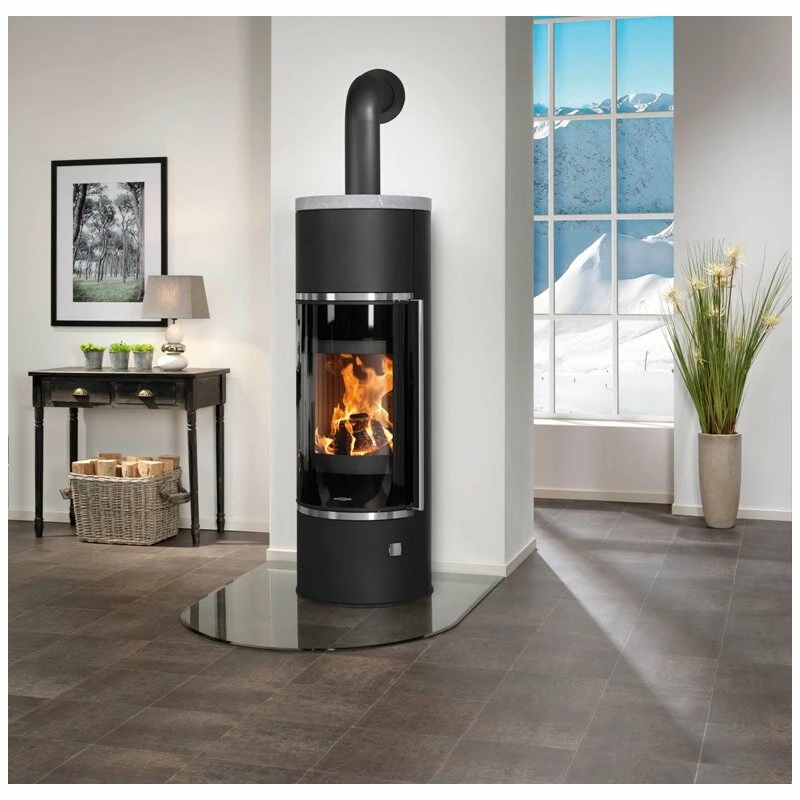 Der Arena Aqua 2.0 überzeugt mit einer Nennwärmeleistung von 8,5kW und seiner klassischen, zeitlosen Geradlinigkeit, die durch den schmalen Griff seitlich des Feuerraums unterstrichen wird.