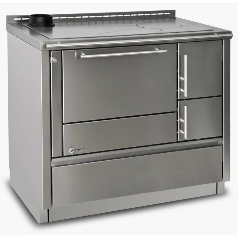 Außerdem besitzt er einen großen Edelstahl-Backofen mit einem Backblech und einem Backrost, Herdplatte in Edelstahl mit Wärmestrahlungsfunktion.