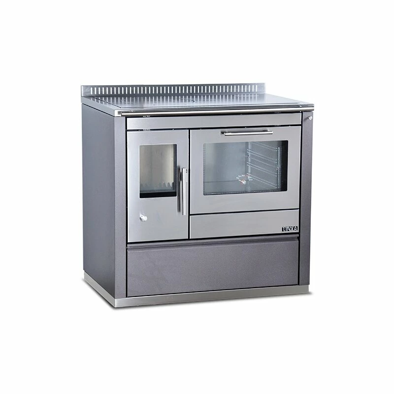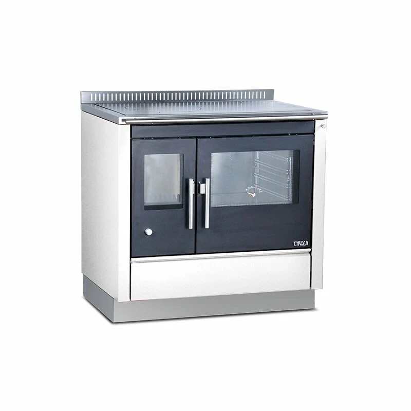 In der Linie TR stellt der Tyrola TR_C 90 ein Schwergewicht in Bezug auf Ausstattung und Funktionalität dar. Mit einer Leistungsstärke von bis zu 7kW spendet der Küchenherd durch einen hohen Schamottanteil und effizienten Rauchzug langanhaltend wohlige Wärme, die nach und nach an den Raum abgegeben wird. Beim Heizen bietet die Sichtscheibe einen einzigartigen Blick auf das Feuer während die Zubereitung der Speisen zu einem echten Erlebnis wird. Ein hohes Niveau wird zusätzlich durch ein geräumiges Backrohr erreicht, welches eine gleichmäßige Garung der Speisen erlaubt und so ihren unverfälschten Geschmack bewahrt. Mit der eingebauten Backrohrbeleuchtung und der doppelt verglasten Backrohrtür mit praktischem Thermometer haben Sie Ihre Speisen stets optimal im Blick. Passen Sie Ihren TR_C 90 mit der richtigen Farbauswahl Ihrem Wohnraum an und lassen Sie den Küchenherd zu einem schmückenden Einrichtungsgegenstand werden!