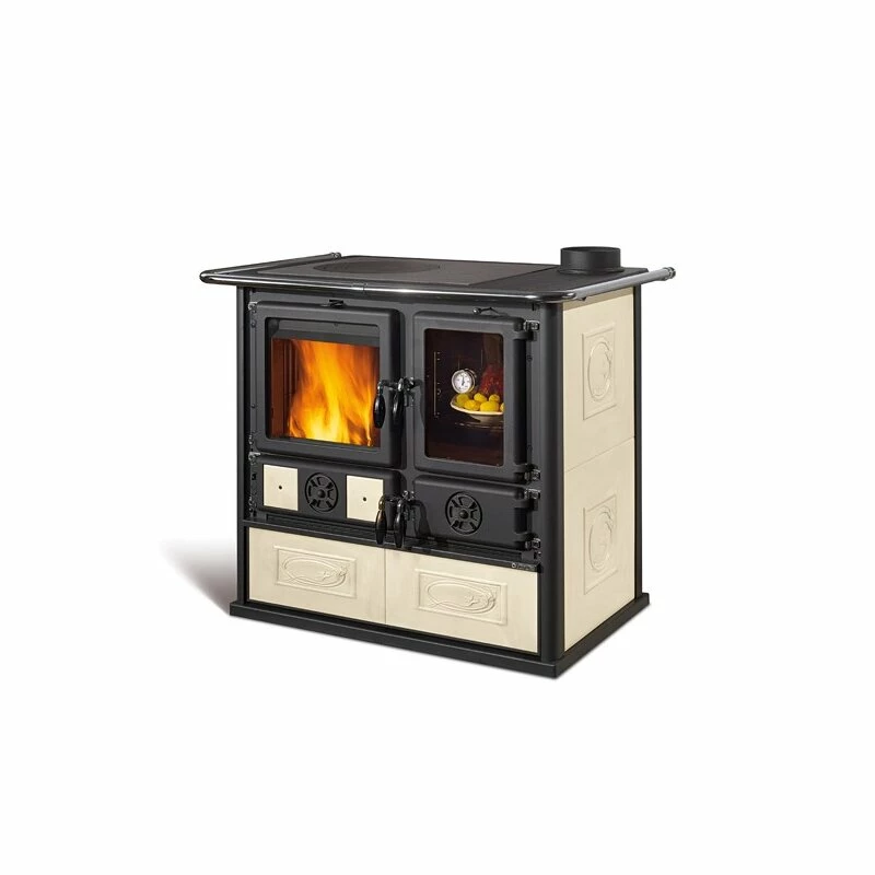 Das Backfach mit einem Inhalt von 28 Liter sowie die gusseisernen Kochplatten ermöglichen das Kochen und Backen mit einem ganz besonderen Feueraroma.