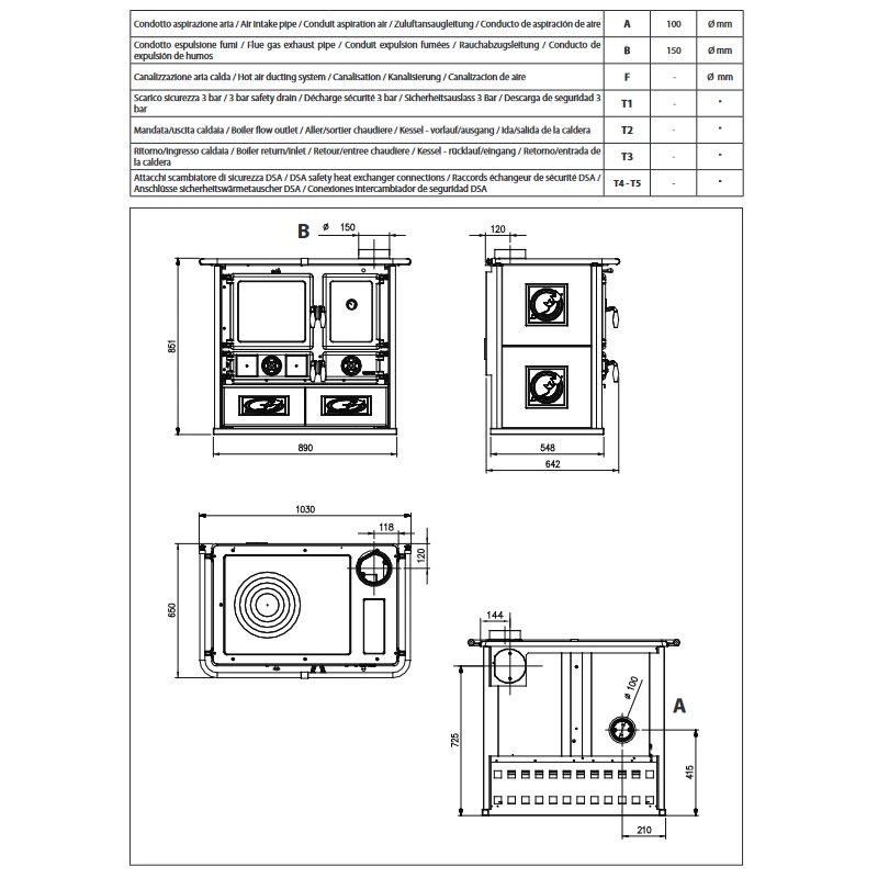 Die Innenbekleidung, Türen, Rahmen und die Platte und Ringe aus hochwertigen Gusseisen. Ein Material, welches bei korrekter Verwendung, eine nahezu unbegrenzte Lebensdauer hat und lediglich einen geringen Wartungsaufwand benötigt.