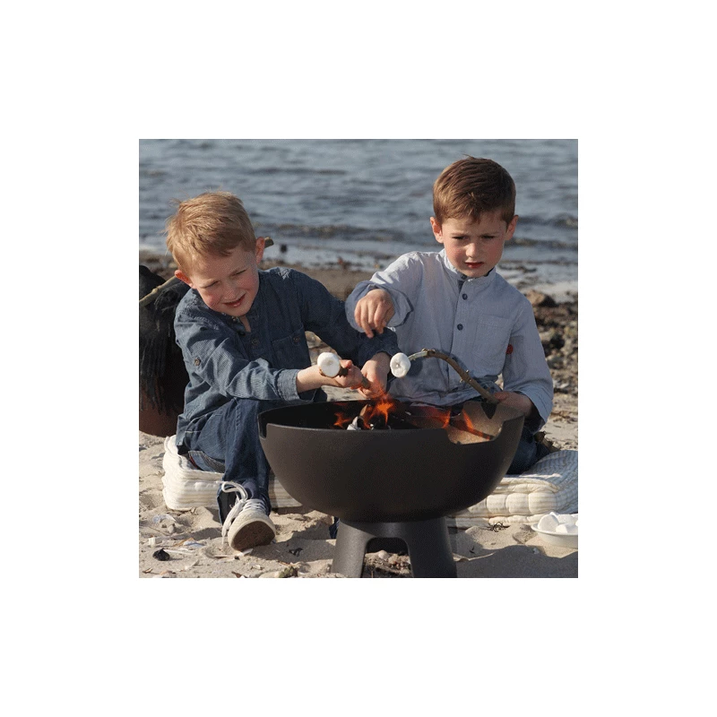 Das Design der Feuerstelle gründet auf Morsøs alter Serie von Kochgeräten. Dank ihrer klaren Linien und dem schlichten, funktionellen Design dient sie auch zu Dekorationszwecken auf der Terrasse. Die Feuerstelle ist aus solidem, beschichtetem Gusseisen gefertigt und rostet daher nie.