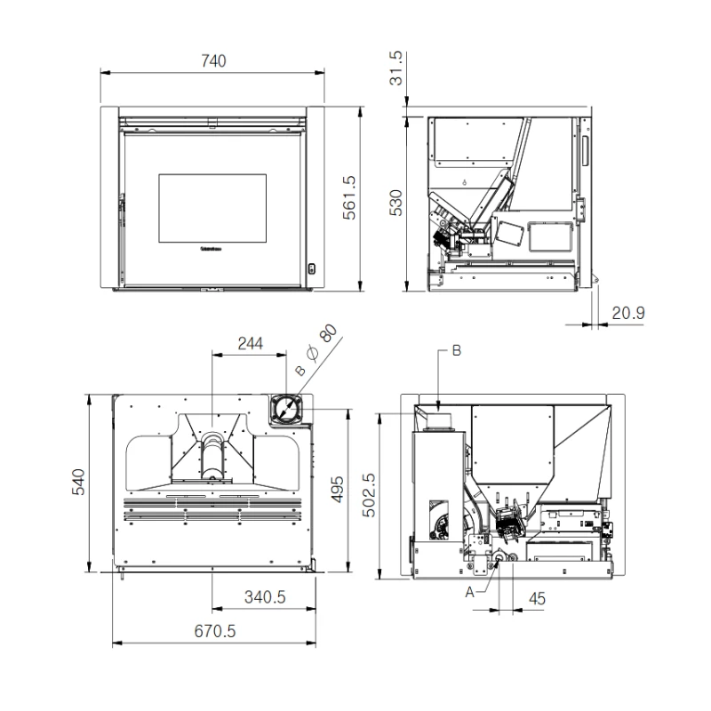 Die Ascheablage mit extrahierbarem Sammelfach macht die Handhabung sehr einfach. Der Brennraum und die Brennschale sind aus Gusseisen gefertigt, das einfache System um den Einsatz auszubauen macht die Reinigung praktikabel.