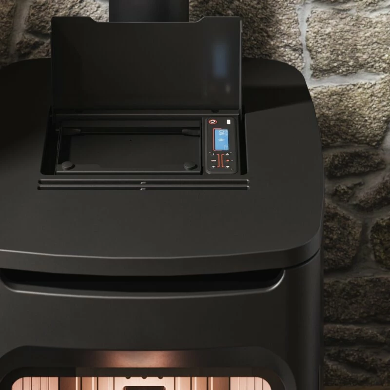 Alle Cadel Öfen sind zudem mit Wlan- und Bluetooth ausgestattet, sodass Sie mit der Easy Connect Plus App von Ihrem Smartphone oder Tablet einschalten, steuern und programmieren können, egal wo Sie sich gerade befinden. Ebenfalls verfügen alle Öfen natürlich auch über ein Display, an denen die Einstellungen vorgenommen werden können. Optional ist auch eine Fernbedienung erhältlich, die die Basiseinstellungen wie Ein- und Ausschalten sowie Regelungen vornehmen kann.