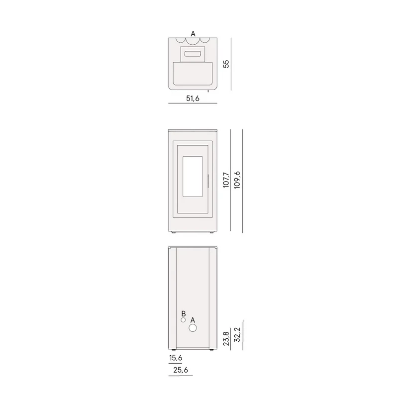 Die Brennerschale, die Tür und der Feuerraum sind aus hochwertigen Gusseisen, zudem ist der Ofen mit einer Sekundärluftverbrennung ausgestattet.