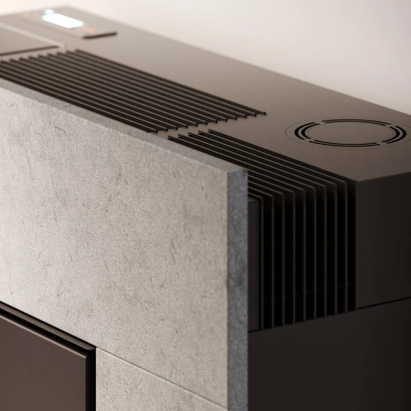 Das Besondere: Sie können die gewonnene Wärme mit zwei unabhängigen Luftgebläse in andere Räume kanalisieren und nutzen.