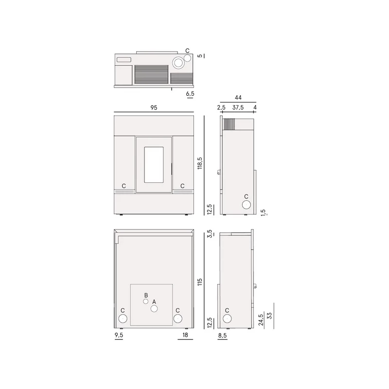 Die Brennerschale, die Tür und der Feuerraum sind aus hochwertigen Gusseisen, zudem ist der Ofen mit einer Sekundärluftverbrennung ausgestattet.