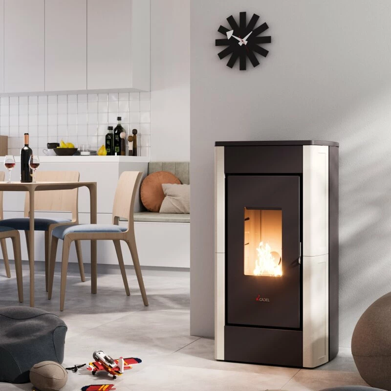 Der Pelletofen Perla 7 mit Gebläse aus dem Hause Cadel ist ein moderner Ofen, der wahlweise mit Metallverkleidung oder Keramikverkleidung in verschiedenen Farben ausgewählt werden kann.