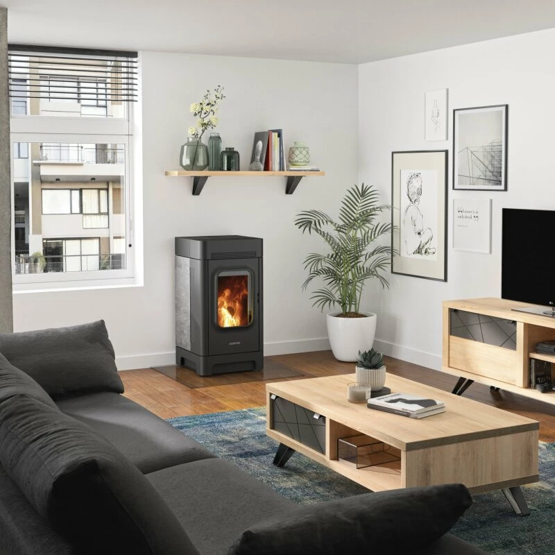 Der Pelletofen Justus Canis ist ein schlichtes und elegantes Modell mit einem Heizleistungsbereich von 6 kW. Mit einem großen Pellettankvolumen von 25kg ist eine Brenndauer von ca. 43 Stunden möglich und ein Raumheizvermögen von bis zu 160m³. Über das übersichtliche Bedienfeld programmieren Sie die automatischen Schaltzeiten problemlos. Aber auch per mitgelieferter Fernbedienung und über Ihr Smartphone via Wifi App ist die Bedienung möglich.
