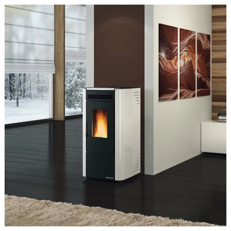 Der vorhandene Aschekasten, der ausziehbare Feuerraum aus Gusseisen sowie das Sicherheitsthermostat gehören zur Standardausstattung und machen die Bedienung des Ofens noch komfortabler. Das innere Thermostat sowie die Möglichkeit den Pelletofen anhand des Wochenprogramms zu programmieren runden das System des Ofens optimal ab.