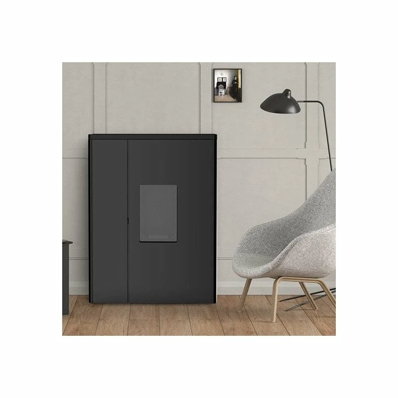 Bei diesem Modell werden die Pellets frontal auf der linken Seite eingefüllt, rechts befindet sich sodann die Tür. Der Ofen besitzt zudem eine Keramikzündkerze, welche eine reduzierte Einschaltzeit von 40 % gewährleistet. Weiterhin ist eine Abschaltfunktion der Ventilation und mehrere Luftverteilungslösungen zur Kanalisierung beider Luftauslässe vorhanden.