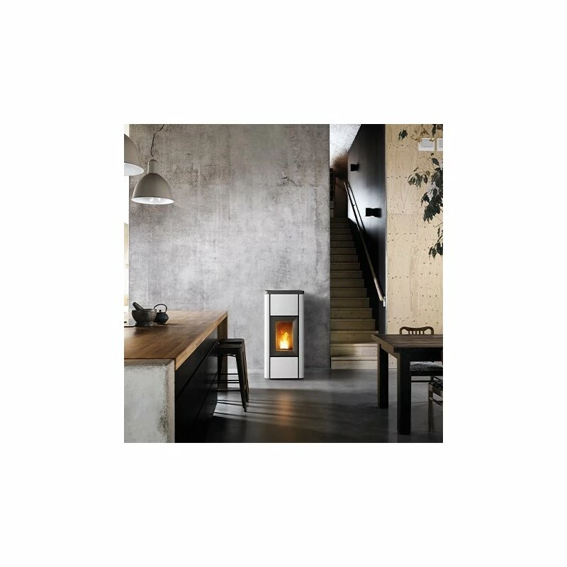 Der Pelletofen Mida Air 8 S gehört zur Kollektion „Easy“ von MCZ. Diese Pelletöfen sind besonders einfach und unkompliziert zu bedienen und mit Standard- Endverarbeitungen und -Elektronik ausgestattet. Der Korpus aus Stahl, die Seitenwände und die Frontelemente sind aus lackiertem Stahl, der Feuerraum und Brennertopf, die Abdeckplatte und die Tür aus hochwertigem Gusseisen. Ein Material, welches eine nahezu lebenslängliche Nutzungsdauer hat. Der belüftete Pelletofen im eckigen Design wird auch zum Hingucker in Ihrem Wohnraum.