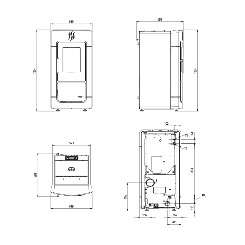 Der vorhandene Aschekasten, der ausziehbare Feuerraum aus Gusseisen sowie das Sicherheitsthermostat gehören zur Standardausstattung und machen die Bedienung des Ofens noch komfortabler. Das innere Thermostat, das Sicherheitsthermostat sowie die Möglichkeit den Pelletofen anhand des Wochenprogramms zu programmieren runden das System des Ofens optimal ab. Eine Fernbedienung ist schon serienmäßig enthalten. Der Wärmetauscher lässt sich praktischerweise manuell reinigen- das Kohlenbecken reinigt sich selbst.