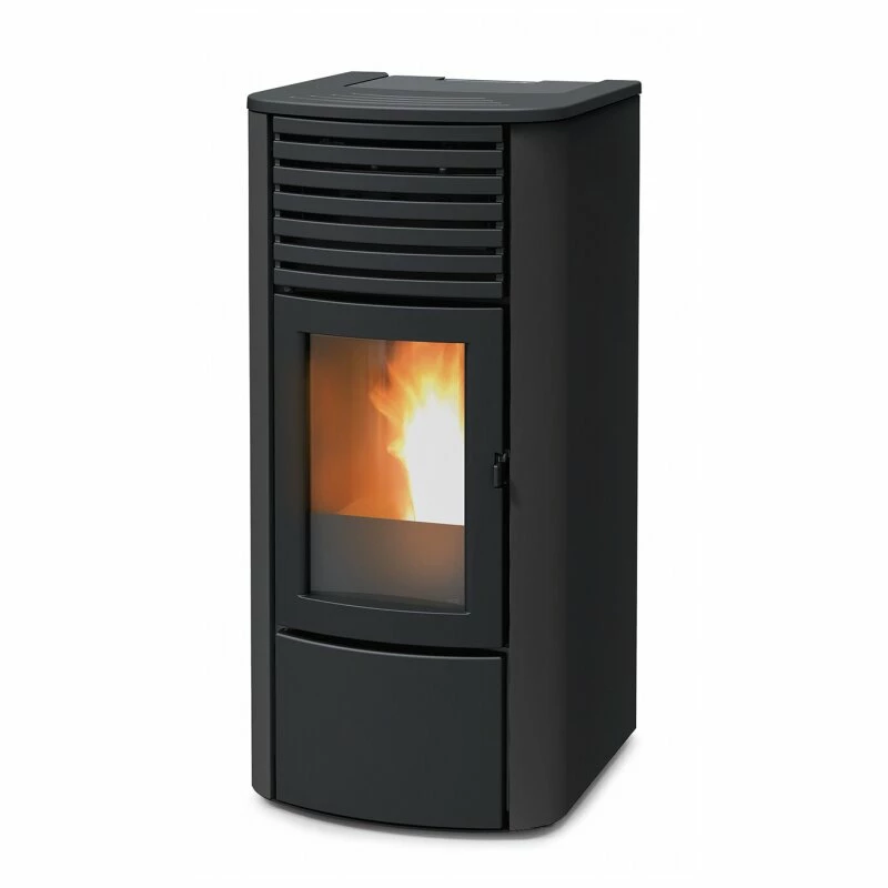 Die Seitenprofile sind aus lackiertem Stahl und die Topplatte aus Gusseisen. Der Clio ist mit einem frontalen Gebläse ausgestattet. Der Ofen besitzt zudem eine Keramikzündkerze, welche eine reduzierte Einschaltzeit von 40 % gewährleistet.
