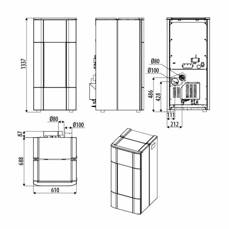 Eine weitere Besonderheit des Ofens: Die Struktur ist komplett dicht, was bedeutet, dass der Ofen auch in Häusern mit niedrigem Energieverbrauch eingesetzt werden können (Raumluftunabhängig). Das Gerät nutzt nicht den Sauerstoff aus dem Raum, sondern die zugeführte frische Luft