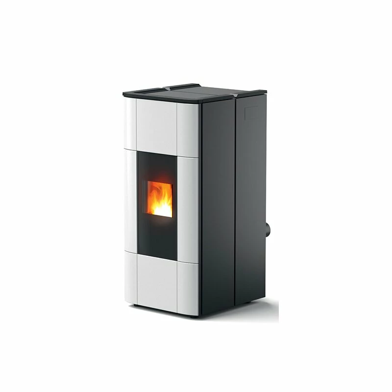 Wassergeführter Pelletheizofen mit 28,5 KW Leistung für die Warmlufterzeugung. Der Pelletofen ist mit der Front in edler Keramik gehalten. Ihre Wunschfarbe können Sie dabei im obigen Konfigurator wählen. Die Topplatte ist aus massivem Gusseisen und die Seitenteile aus schwarzem Metall. Das Besondere: Diese Hydroversion verfügt über den normalen Hydro- Standard hinaus noch über eine selbstreinigende Brennerschale aus Gusseisen mit wöchentlicher Ascheentleerung. Eine vereinfachte Wartung und einer schnellen Einschaltung in nur rund 3 Minuten.