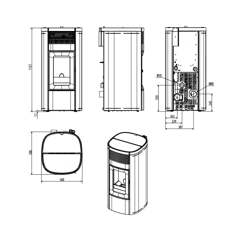 Bei diesem Produkt wurde das Fassungsvermögen des Aschekastens auf fast 5 Liter und das des Aschefachs auf über 8 Liter erhöht, was ungefähr einer Woche Ofenbetrieb entspricht