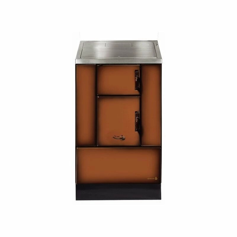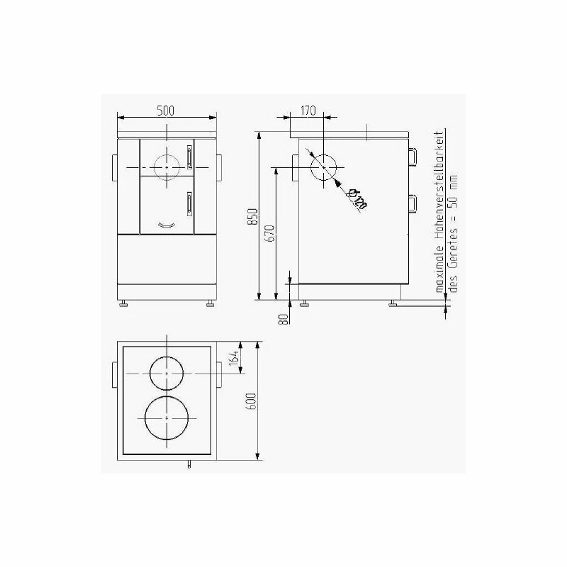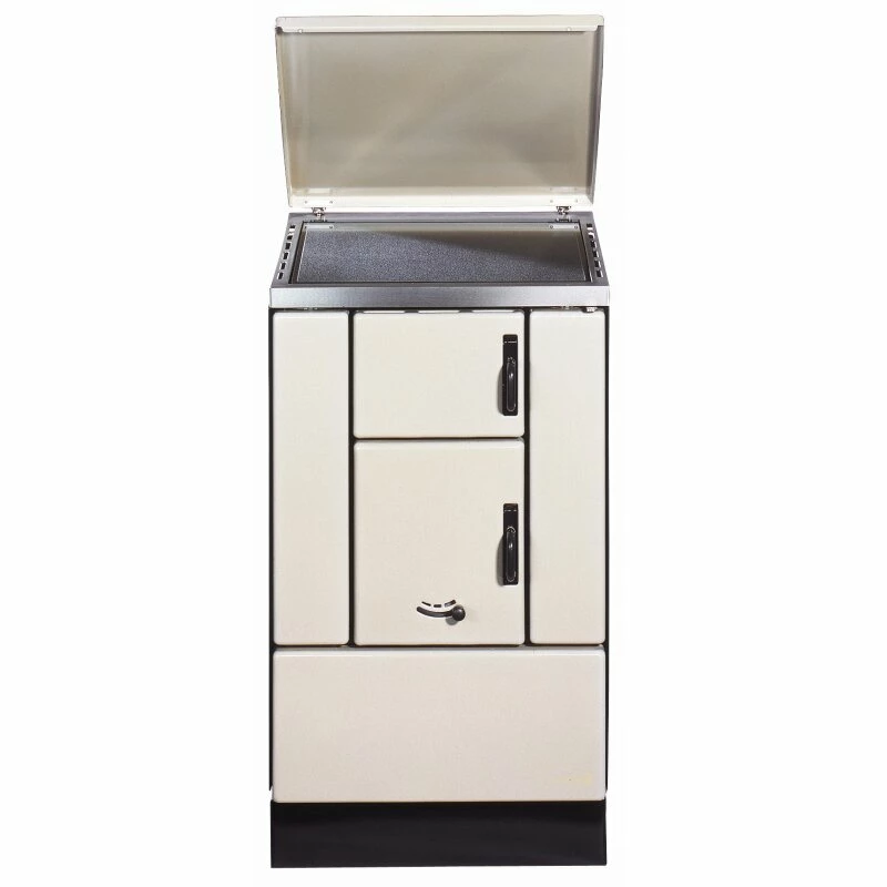Der schmale, kompakte Beistellherd (50 cm Breite) kann in Maron, Weiß und Maron bestellt werden. Der K 150 ist mit exklusivem Edelstahlherdrahmen und pflegeleichter Glaskeramikplatte oder geschliffener Stahlplatte ausgestattet und eignet sich optimal als Zusatzheizung und Kochelement. Hinter seiner geteilten Vorderfront mit praktischen Kipphebelgriffen verbergen sich ein äußerst großer Brennraum, ein geräumiger Aschekasten und eine großzügige Brennstoffschublade. Der praktische höhenverstellbare Rost ermöglicht für jede Jahreszeit die ideale Beheizung: Im Sommer schnelles Ankochen mit wenig Brennstoff und im Winter lange Brenndauer ohne Nachzulegen. Dank Schraubfüßen lässt sich der Herd um 5 cm höhenverstellen und sich so problemlos in jede Küchenzeile integrieren.
